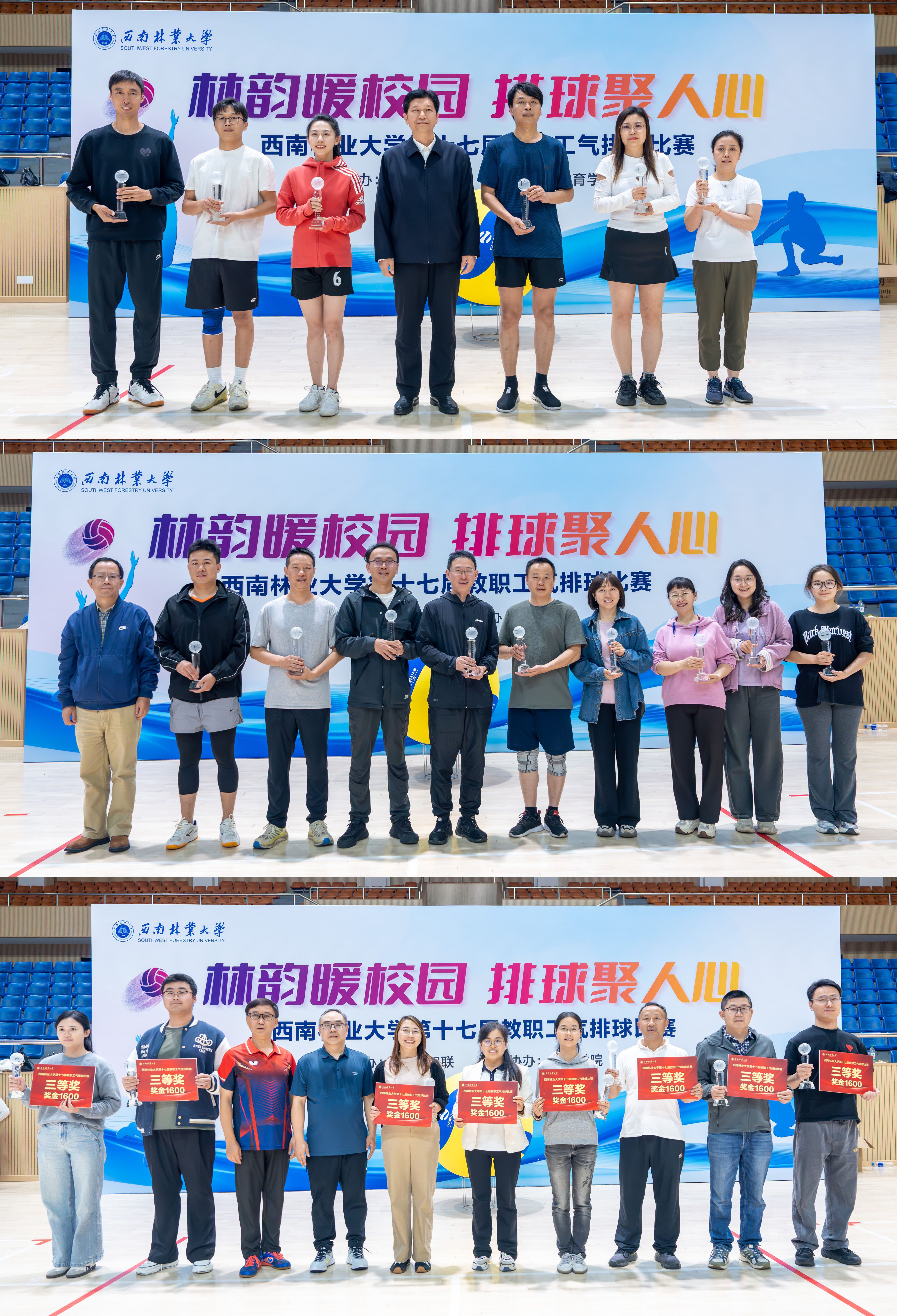 经过100余场的激烈角逐,比赛成绩终于揭晓。男子组体育学院队、马克思主义学院队、职能部门1队荣获一等奖,园林园艺学院队、职能部门3队、西林附中队、材料与化学工程学院队、职能部门2队斩获二等奖,外国语学院队、生物与食品工程学院队、经济管理学院队、林学院队获得三等奖。女子组体育学院队、职能部门3队、西林附中队荣获一等奖,职能部门2队、经济管理学院队、外国语学院队、土木学院队、理学院队获得二等奖,水土保持学院队、马克思主义学院队、材料与化学工程学院队、职能部门1队获得三等奖。