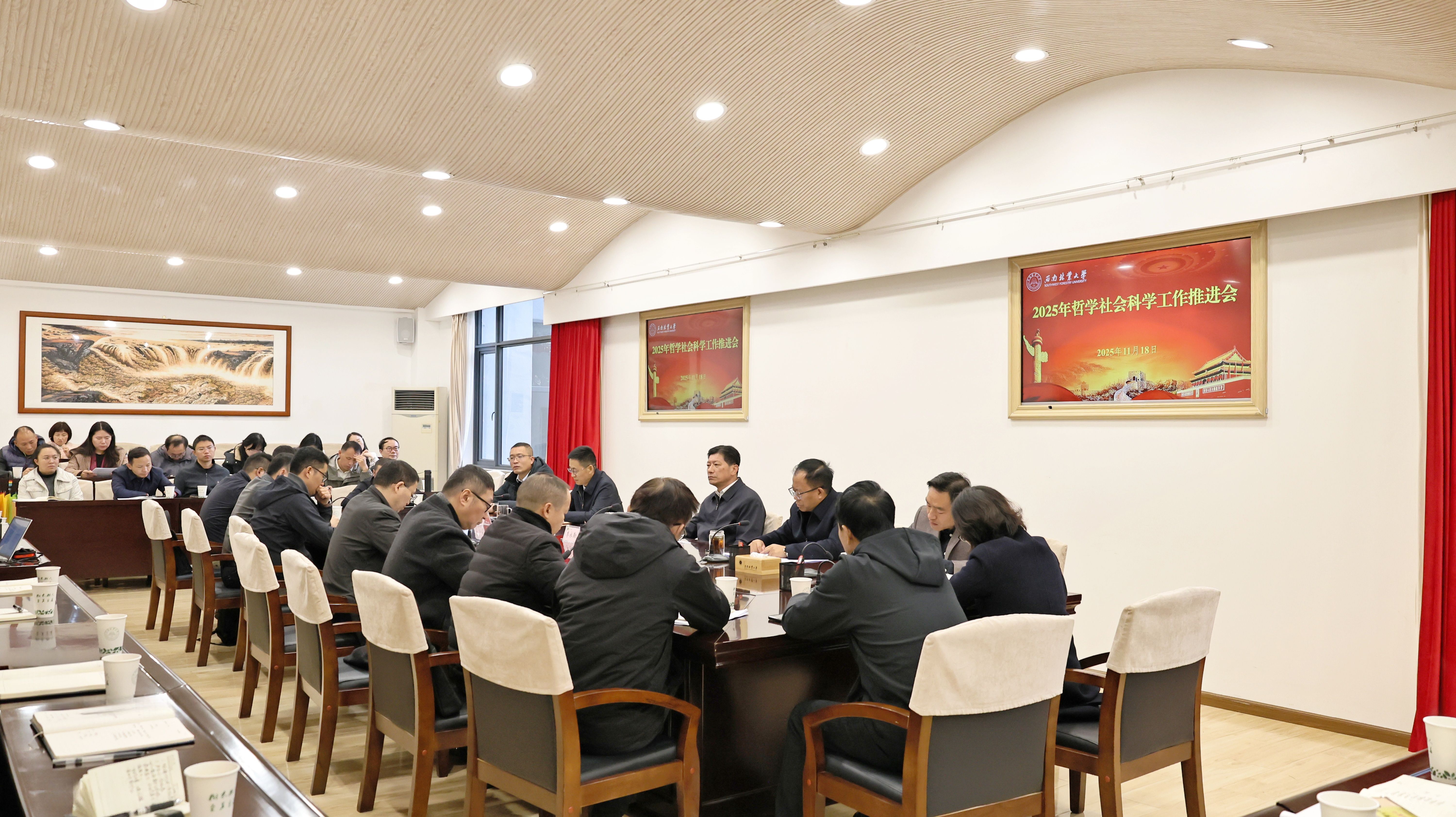11月18日,2025年哲学社会科学工作推进会暨社科联委员会扩大会议在立德楼举行。校党委书记李永勤、副校长丁仁展出席会议,校社科联委员、文科学院负责人和科研秘书、教师代表参加会议。校党委副书记魏宏主持会议。