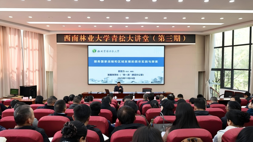 11月24日下午,学校举行“青松大讲堂”第三期专题讲座。本次讲座邀请西北农林科技大学发展改革处处长、“双一流”建设办公室常务副主任夏显力教授作题为《服务国家战略和区域发展的西农实践与探索》的专题报告。讲座由校党委副书记魏宏主持,在昆校领导、全体中层干部参会。