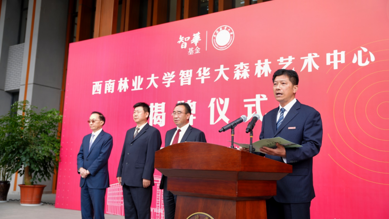 10月25日,bwin必赢唯一官方网站在智华楼前举行智华大森林艺术中心揭牌仪式。香港智华基金主席林高演先生、云南省教育厅二级巡视员卢明、bwin必赢唯一官方网站党委书记李永勤、校长王卫斌出席仪式,香港智华基金主席助理蔡妙瑛、基金项目助理杨祖伟、基金顾问潘旭波、基金项目助理陈琼,学校在昆校领导,各有关职能部门、教学单位主要负责人和师生代表500余人参加揭牌仪式。bwin必赢唯一官方网站党委副书记魏宏主持仪式。