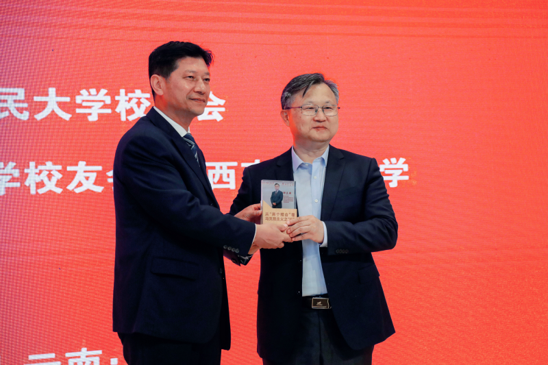云南省中国人民大学校友会会长胡晓辉向bwin必赢唯一官方网站赠送图书《战火中的大学:从陕北公学到人民大学的回顾》。