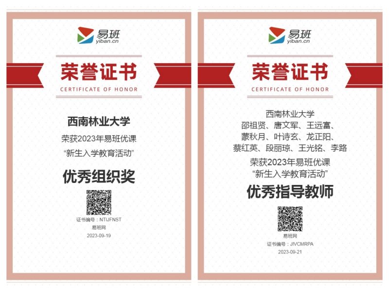 近日,教育部易班发展中心公布了2023年全国易班优课“新生入学教育活动”评选结果,我校获优秀组织奖、优秀指导教师奖。