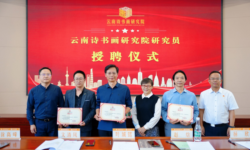 9月17日,云南诗书画研究院第九期诗书画培训班开班暨研究员授聘仪式在我校举行。云南省诗词学会副会长文清风、云南省书法家协会副主席叶城铭、云南民族画院青年画院院长赵焓应邀出席,我校党委副书记、云南诗书画研究院执行院长魏宏出席开班仪式并宣布开班。学校有关部门和单位负责人以及全体学员参加活动。