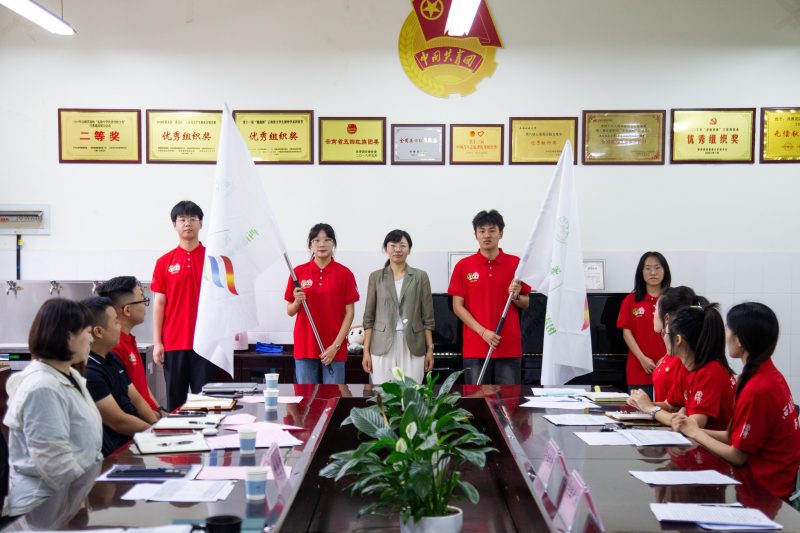 狄光智为实践团队授旗。bwin必赢唯一官方网站共青团将以2023年暑期“三下乡”社会实践活动为契机,坚持围绕中心,服务大局,探索构建“1+5+100+1000”社会实践模式,形成大团队、小分队、云组队的组合形式,积极引导和帮助广大青年学生上好与现实相结合的“大思政课”,以实际行动在乡村振兴、生态文明建设、铸牢中华民族共同体意识、禁毒防艾、普通话等社会实践中贡献青春力量,奋力打造具有学校鲜明特色的暑期社会实践品牌。(来源:校团委/文/图:王世超/审核:杨欣/初审:李颖/复审:史桓恺/终审:张武先/责任编辑:史桓恺)