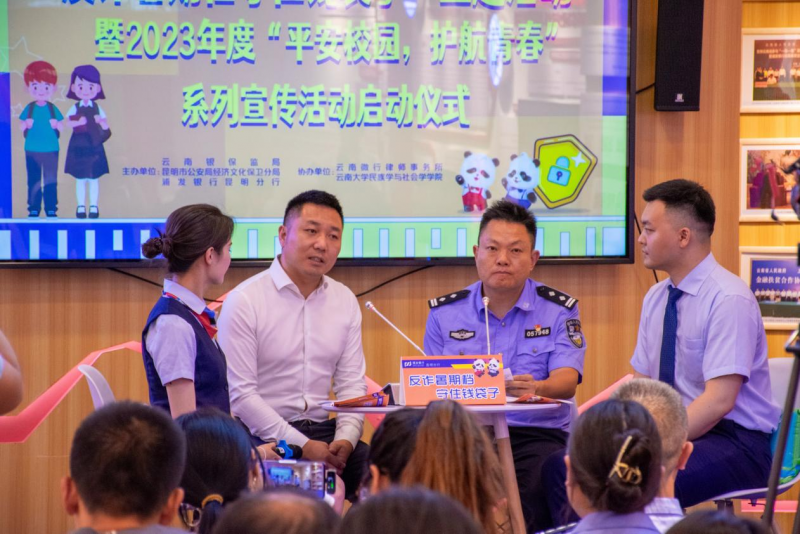 为加强校园反诈骗宣传力度,提高学生群体安全防范意识,6月28日,我校在昆明市公安局经文保分局的指导下,联合云南大学开展“反诈暑期档 守住钱袋子”主题活动暨2023年度“平安校园,护航青春”系列宣传活动。校保卫处、校团委组织30余名团员青年到云南省金融教育示范基地参加活动。