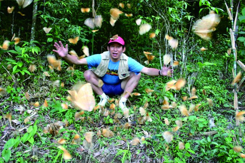 蝴蝶对生态“健康”非常挑剔,对环境变化异常敏感,所以称蝴蝶是生态系统的指示物种,从前,老百姓看到竹叶被蝴蝶幼虫吃光了就把它说成是害虫,其实这是自然界的一种正常现象。他对水头寨后山的一片竹林进行了跟踪调查,2004年这片竹林被幼虫把叶子都吃光了,后来发现雨季过后竹林长势喜人,竹子照样发出了新叶。2015年4月,这片竹林又发现蝴蝶幼虫把竹叶吃光,结果发现林下发笋率特高,林下的小杂木叶片上挂满了宝石般的蝴蝶蛹。原来是这片竹林需要自然更新换代,大量的幼虫帮竹子吃光了老化的叶片,林下变得通风透光好,这样会加速刺激竹林大量的萌发新笋,到六月份新的竹林枝繁叶茂时,蝴蝶正好又是交配产卵期,新的竹林又给箭环蝶幼虫提供了丰富充裕的食物来源。他经过科考了解马鞍底蝴蝶的种类和现状。