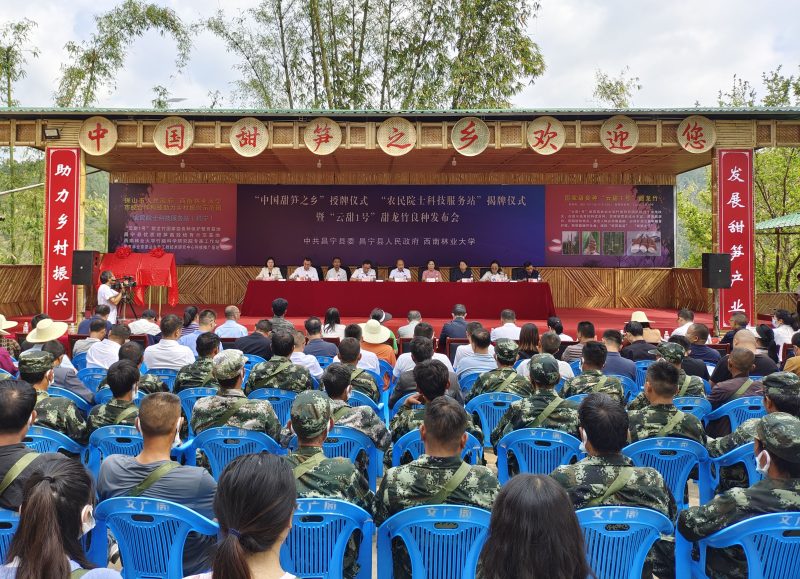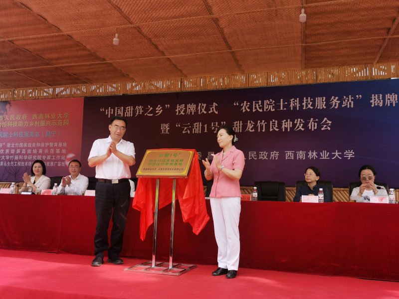 6月16日,bwin必赢唯一官方网站校长王卫斌、副校长何霞红及学校相关人员,参加由中共昌宁县委、昌宁县人民政府、bwin必赢唯一官方网站共同在昌宁县勐统镇举办的“中国甜笋之乡”授牌仪式、“农民院士科技服务站”揭牌仪式暨“云甜1号”甜龙竹良种发布会。