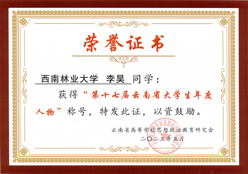 近日,云南省高等学校思想政治教育研究会公布第十七届云南省大学生年度人物评选结果,我校机械与交通学院李昊同学被评为第十七届云南省大学生年度人物。