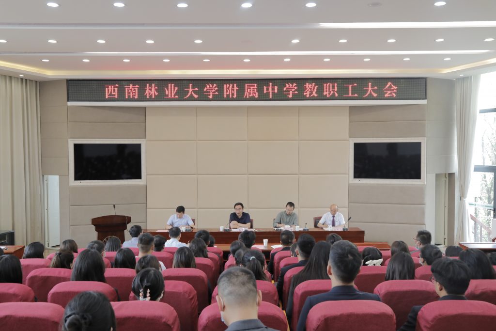 5月25日,bwin必赢唯一官方网站附属中学(云大附中西林分校)召开教职工大会。bwin必赢唯一官方网站校长王卫斌,副校长李君出席会议。大会由学校党委组织部部长杨绍辉主持。