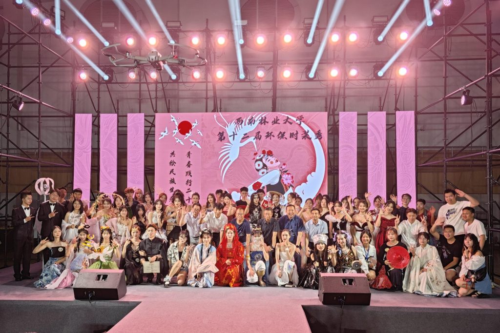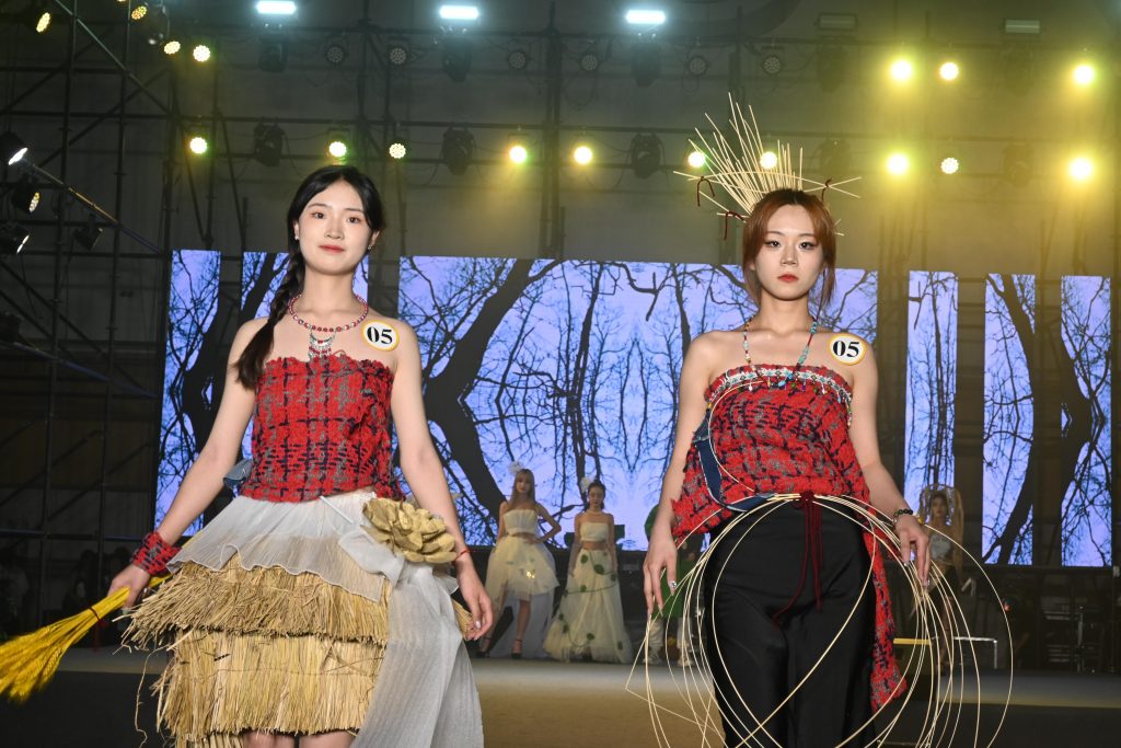 本次大赛以“青春践行二十大 共绘民族生态美”为主题,参赛团队从民族文化、自然生态、中华优秀传统文化中汲取设计灵感,巧妙利用废弃报纸、快递纸盒、衣物窗帘、树枝落叶等材料,精心设计制作成一件件风格各异、独具匠心的礼服、衣裙和饰品,通过舞台上精彩演绎,绽放“民族美、生态美、文化美”。