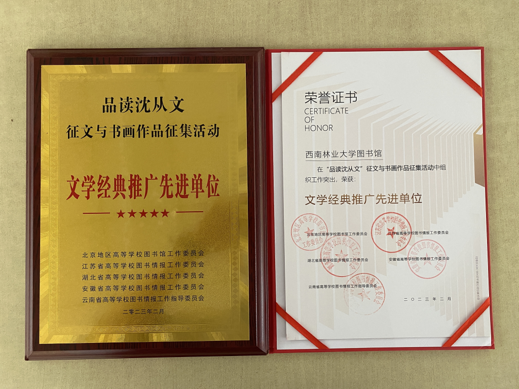 近日,我校图书馆在“品读沈从文”征文与书画作品征集活动中,荣获“文学经典推广先进单位”。