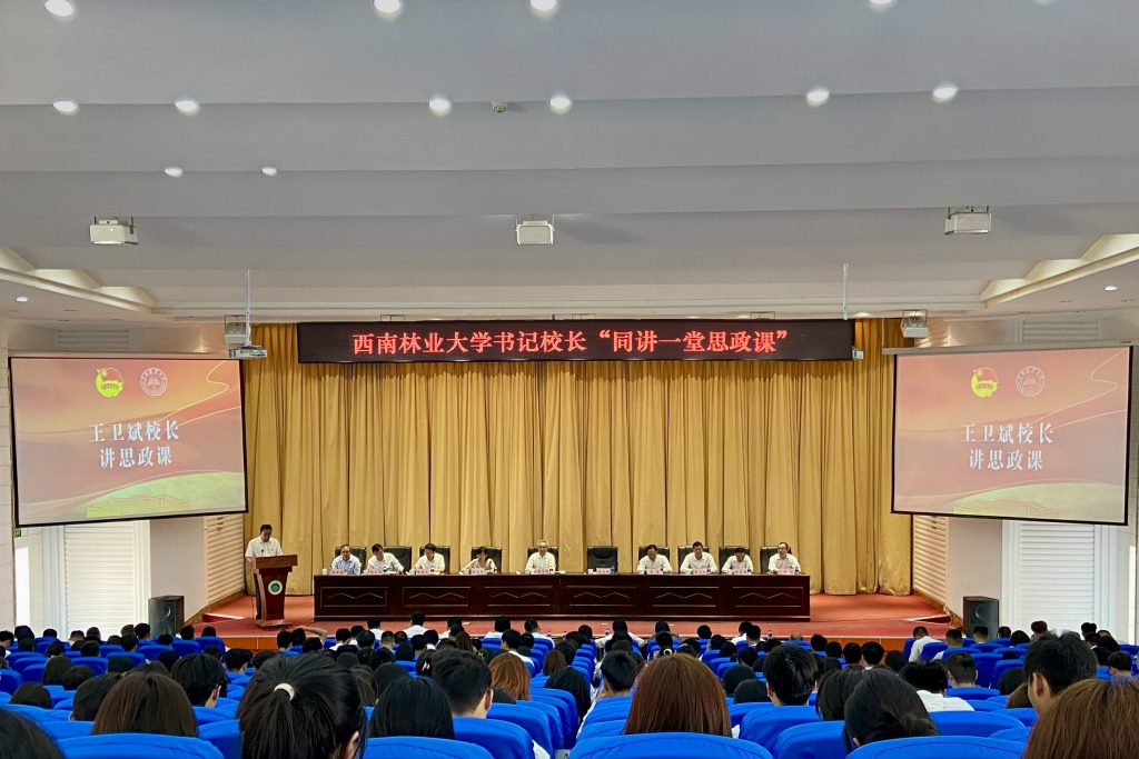 表彰大会后,校党委书记、校长为参会师生开展“同讲一堂思政课”。