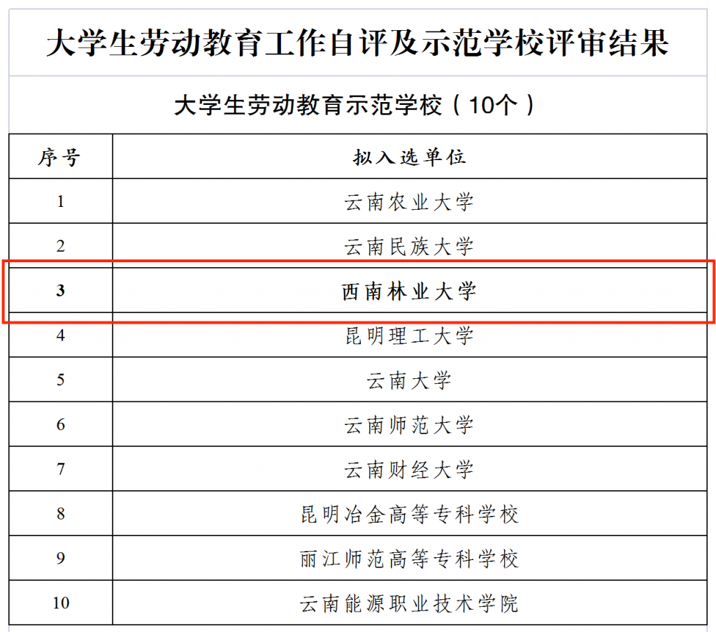 近日,中共云南省委教育工委办公室公布了云南省大学生劳动教育示范学校和典型案例名单,我校荣获“云南省大学生劳动教育示范学校”称号。