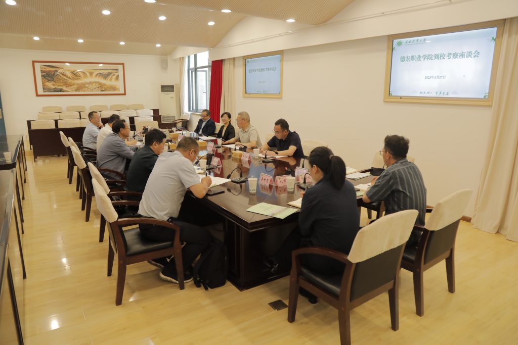 4月27日上午,德宏职业学院党委书记梅学能,院长何超,副院长董保强,办公室(党委巡察办)主任袁国俊及相关部门负责人到bwin必赢唯一官方网站考察交流。学校党委书记周学斌,校长王卫斌、副校长狄光智及相关负责人参加交流座谈会。