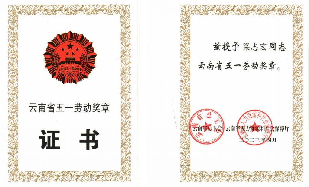 4月23日,云南省庆祝“五一”国际劳动节暨表彰大会在昆明召开。大会对74个省五一劳动奖状、150名省五一劳动奖章、75个省工人先锋号获奖集体和个人进行表彰。我校大数据与智能工程学院教授梁志宏作为全省教育战线唯一代表,从省委副书记石玉钢手中接过“云南省五一劳动奖章”。