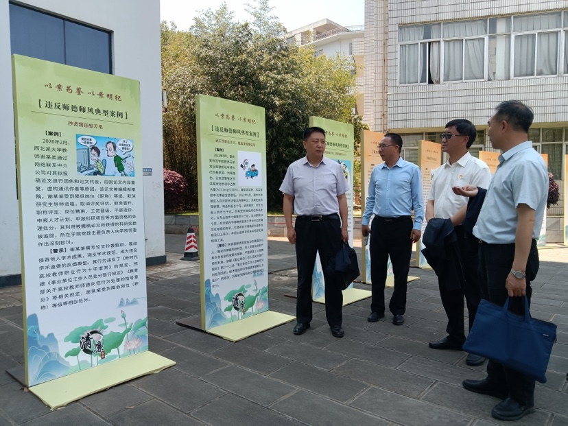 4月12日,按照上级纪委的工作安排,昆明主城片区18所省属院校纪委专题会议在bwin必赢唯一官方网站国际交流中心召开。会议结束后,驻省教育厅纪检监察组组长金涛与参会的各高校纪委书记、副书记、纪检处长等50余人参观了我校第三届“清廉西林”文化周主题展览,校纪委书记、监察专员武红星陪同观展。