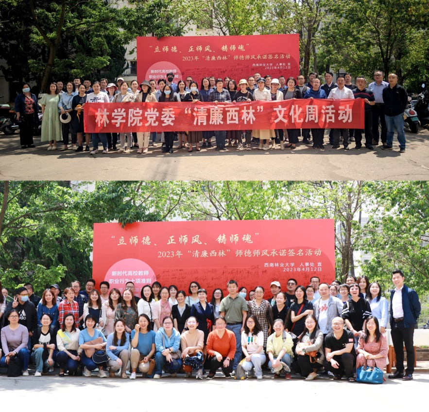 按照学校《2023年度“清廉西林”文化周活动实施方案》要求,4月12日至14日,学校组织在教职工食堂前举行“立师德、正师风、铸师魂”2023年“清廉西林”文化活动周师德师风承诺签名活动。学校党委书记周学斌、校长王卫斌以及在昆校领导在承诺墙上签名,拉开了活动序幕。