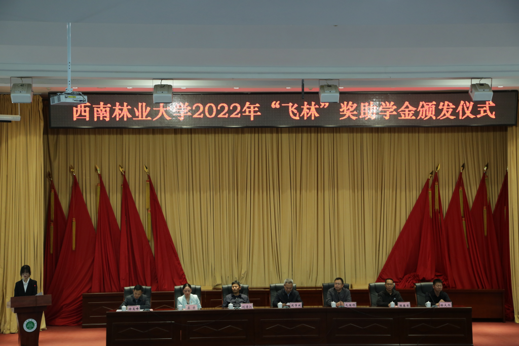 4月6日,2022年“飞林”奖助学金颁发仪式在第一图书馆大报告厅举行。校党委书记周学斌、副书记刘清江,昆明飞林人造板集团有限公司党委书记、副董事长毛顺国,党委副书记、纪委书记张春芳,行政总监晏菲等出席仪式。学生处、各二级学院学工干部及学生代表参加。
