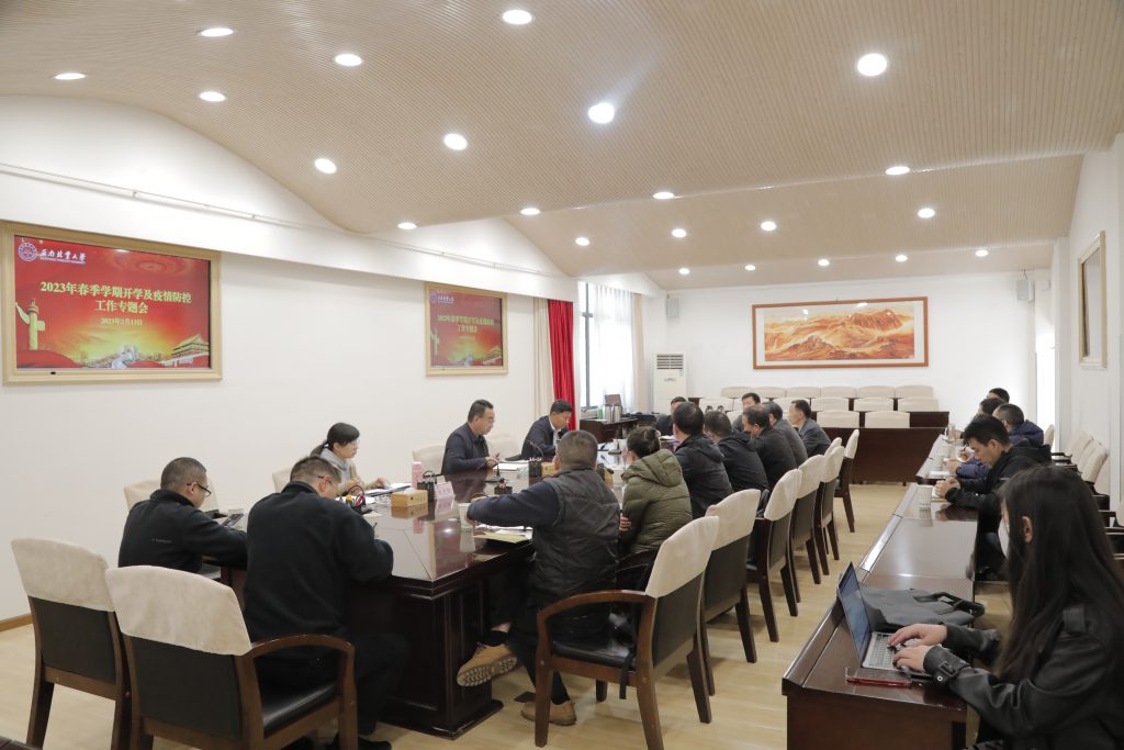 为深入贯彻落实党中央、国务院和省委、省政府、省委教育工委、省教育厅有关工作部署和要求,2月13日下午,学校召开2023年春季学期开学及疫情防控工作专题会,统筹部署和安排学校新学期教育教学及校园疫情防控有关工作。会议由校长王卫斌主持,校党委副书记刘清江、副校长狄光智,以及有关部门主要负责人参加会议。