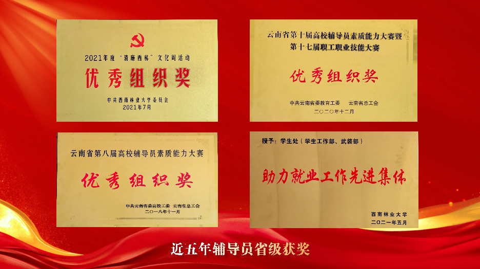加强网络思政工作,选送全国易班头条200余篇,媒体报道50余篇,优课月使用排名、轻应用使用排名平均居云南省高校第一,进入全国排名均5次。党史学习教育主线活动“3个100”做到持续更新,持续维护,引起全国200余所高校近100万余人次参与学习。打造“一院一品一特色”绿色食品牌、健康生活目的地、植物志、书香西林等20余个网络思政文化品牌,累计发稿量500余篇,创作文化原创作品40余篇。2019至2022年多次获云南省委教育工委十佳优秀易班工作站表彰;获“十佳易班共建高校”荣誉称号,2020年获习近平新时代中国特色社会主义思想线上知识竞赛优秀组织奖、主题征文优秀组织奖;获教育部易班发展中心“两星级”易班工作站表彰;2021年荣获“全国易班优秀共建高校”荣誉称号;获“百年绿色长征路·峥嵘岁月报国情”优秀组织奖;获中国青年报“千校千项”暑期实践类表彰;2022年“易班网全国大学生简历设计大赛”活动荣获优秀组织奖;全国易班优课“新生入学教育活动”优秀组织奖。