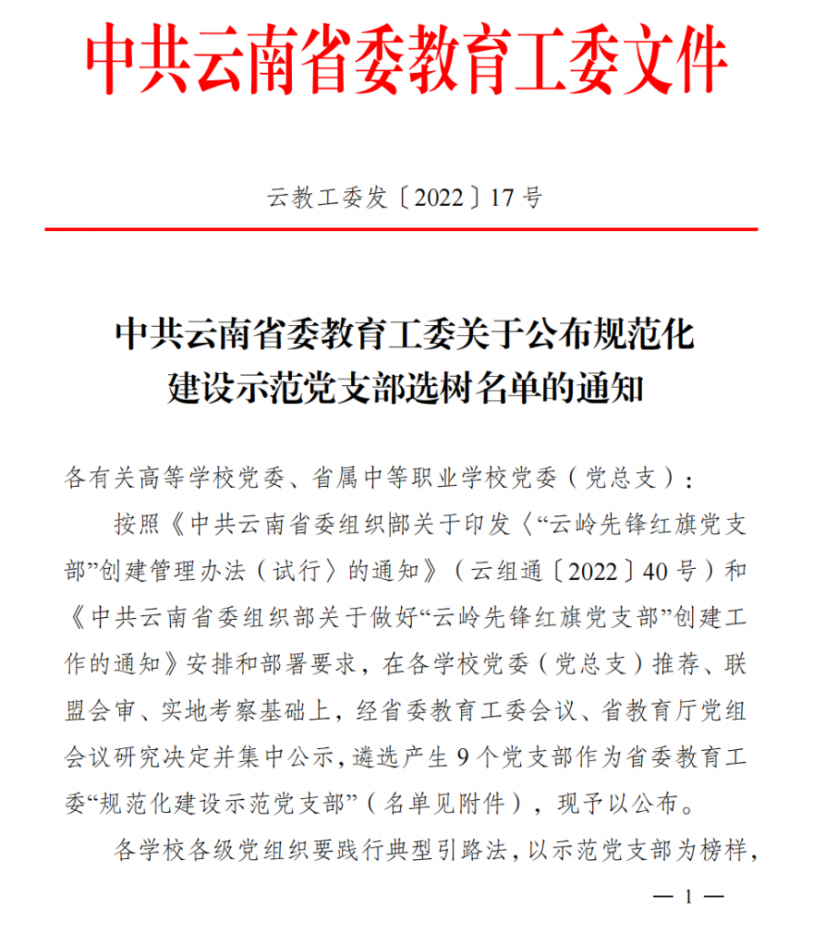 此次省级选树是根据省委和省委教育工委工作要求,在各学校党委(党总支)推荐、联盟会审、实地考察基础上,经省委教育工委会议、省教育厅党组会议研究决定并集中公示,遴选产生9个党支部作为省委教育工委“规范化建设示范党支部”。