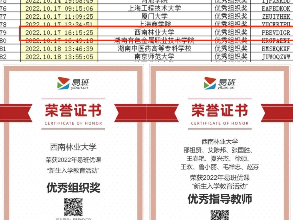近日,易班优课平台开展的2022年易班优课“新生入学教育活动”正式结束。我校获2022年易班优课“新生入学教育活动”优秀组织奖、优秀指导教师奖。