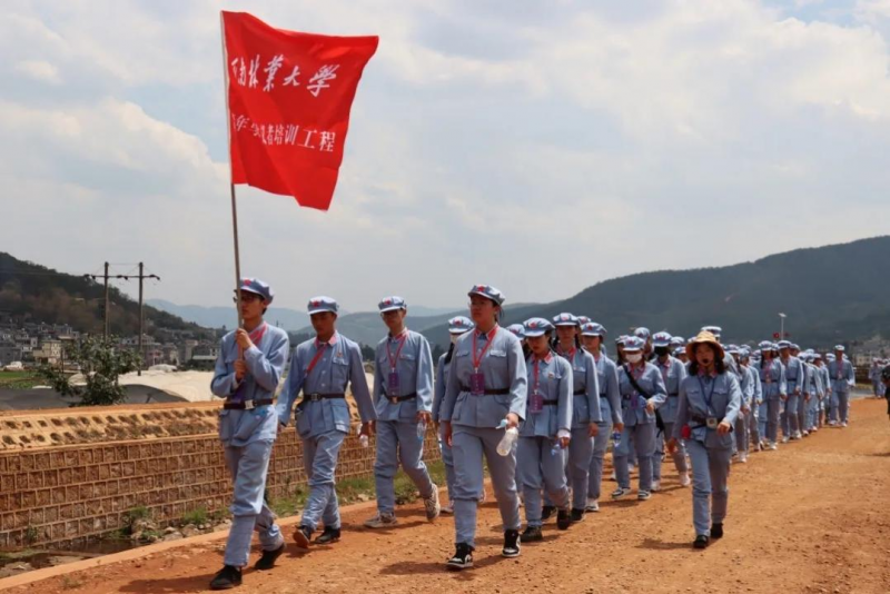 线下,学习实施青年马克思主义者培养工程,举办“青年马克思主义者培养工程”第八期大学生骨干培训班,培训周期为一年,从集中理论研习、实习实践锻炼、日常跟踪培养三大板块进行规划,课程内容涵盖理论培训、课题研究、专题报告、自主学习、交流研讨、素质拓展、社会实践七个方面。将青马学员的政治理论提升、担当精神培育、理想信念培养与党史学习教育有机融合,成立“青马学员党史宣讲团”,开展“青马学员进支部讲党史”特色宣讲活动。组织青马学员到柯渡红军长征纪念馆进行现场教学,100名青马学员身穿红军服,观红色影片,听红色故事,悟红色精神,传红色基因,重走长征路。以实际行动追忆革命先辈们波澜壮阔的奋斗故事,深切感受人民英雄英勇顽强、不屈不挠的革命斗争精神。