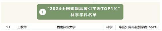 在“2024中国知网高被引学者 Top 1%”预发布名单中,土木工程学院王秋华教授入选林学学科Top 1%的140位学者之一。