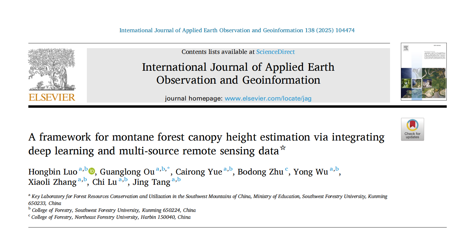 针对山区地形和复杂植被条件下森林冠层高度估计精度不高的问题,基于Landsat 8、ALOS-2 PALSAR和GEDI构建了考虑地形坡度的深度马尔可夫回归模型进行南亚热带山地森林冠层高度估计,预测精度接近80%。(Luo et al., 2025, International Journal of Applied Earth Observation and Geoinformation, https://doi.org/10.1016/j.jag.2025.104474,中国科学院一区TOP,IF=7.6)。