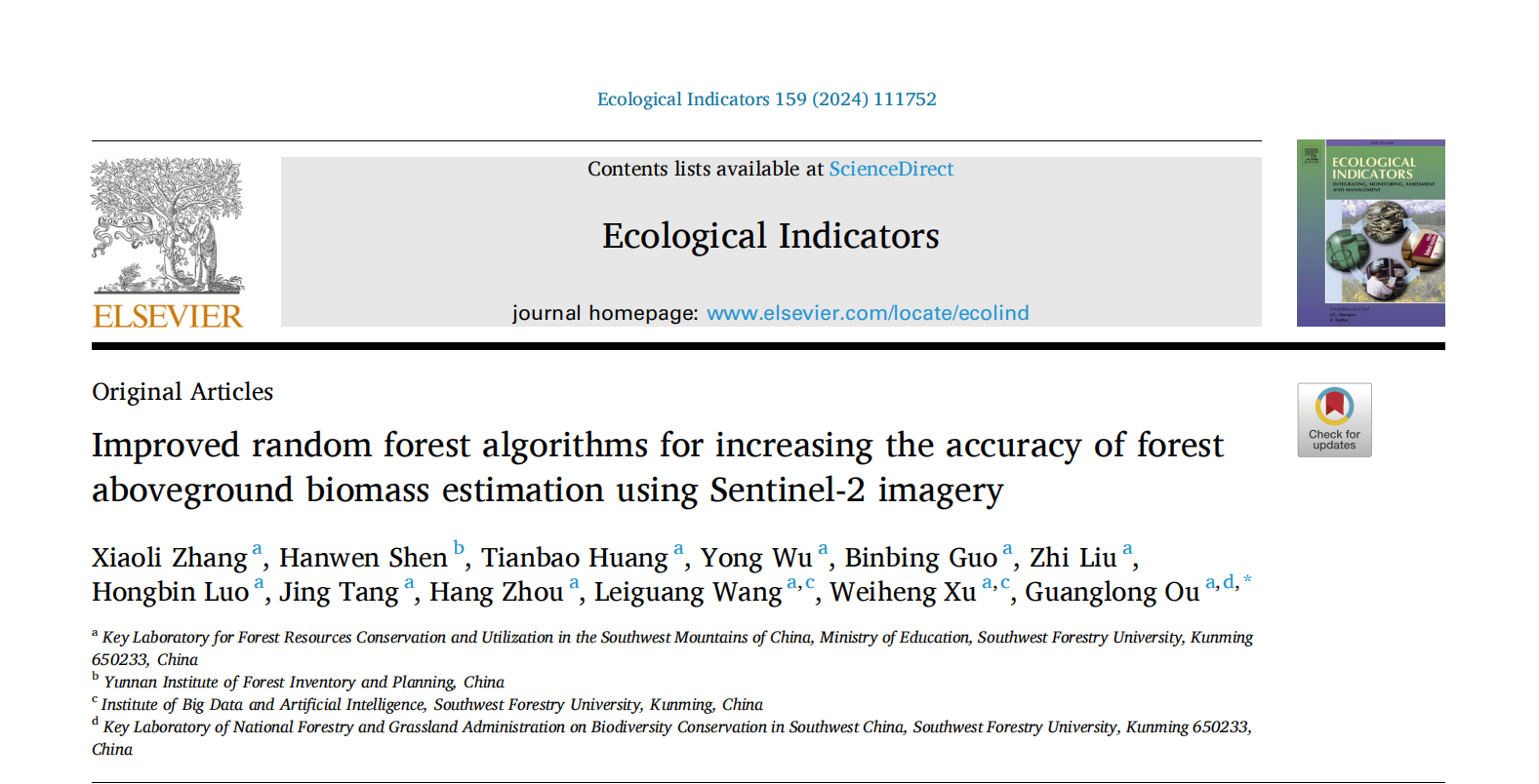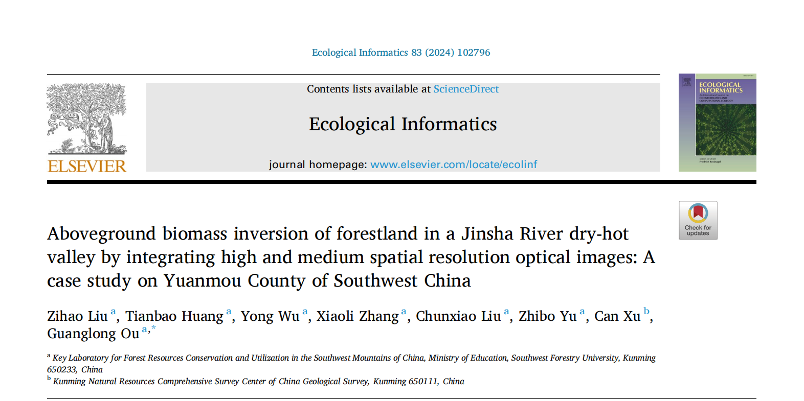 提出一种基于多源遥感数据与机器学习模型的干热河谷区地上生物量估测方法,结合Sentinel-2A与GF-2影像,利用RF与XGBoost模型对森林、灌木和草地生物量进行分类估算,显著提高了稀疏林区植被生物量的遥感估算精度。(Liu et al., 2024, Ecological Informatics, https://doi.org/10.1016/j.ecoinf.2024.102796, 中国科学院二区, IF=5.9)。