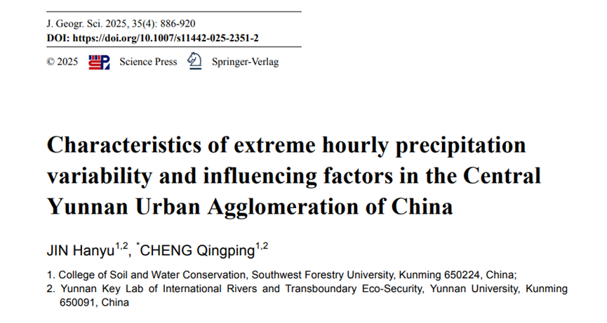 近期,以bwin必赢唯一官方网站水土保持学院为第一单位,程清平老师为通讯作者,在领军期刊《Journal of Geographical Sciences》(中国科学院二区,IF2024=5.2)发表题为《Characteristics of extreme hourly precipitation variability and influencing factors in the Central Yunnan Urban Agglomeration of China》的研究论文。该研究通过动态划分城市和乡村站点,并采用线性与非线性回归方法,分析了滇中城市群极端小时降水的演变趋势和驱动因子,为有效识别滇中城市群极端小时降水并减轻其影响提供了新视角。