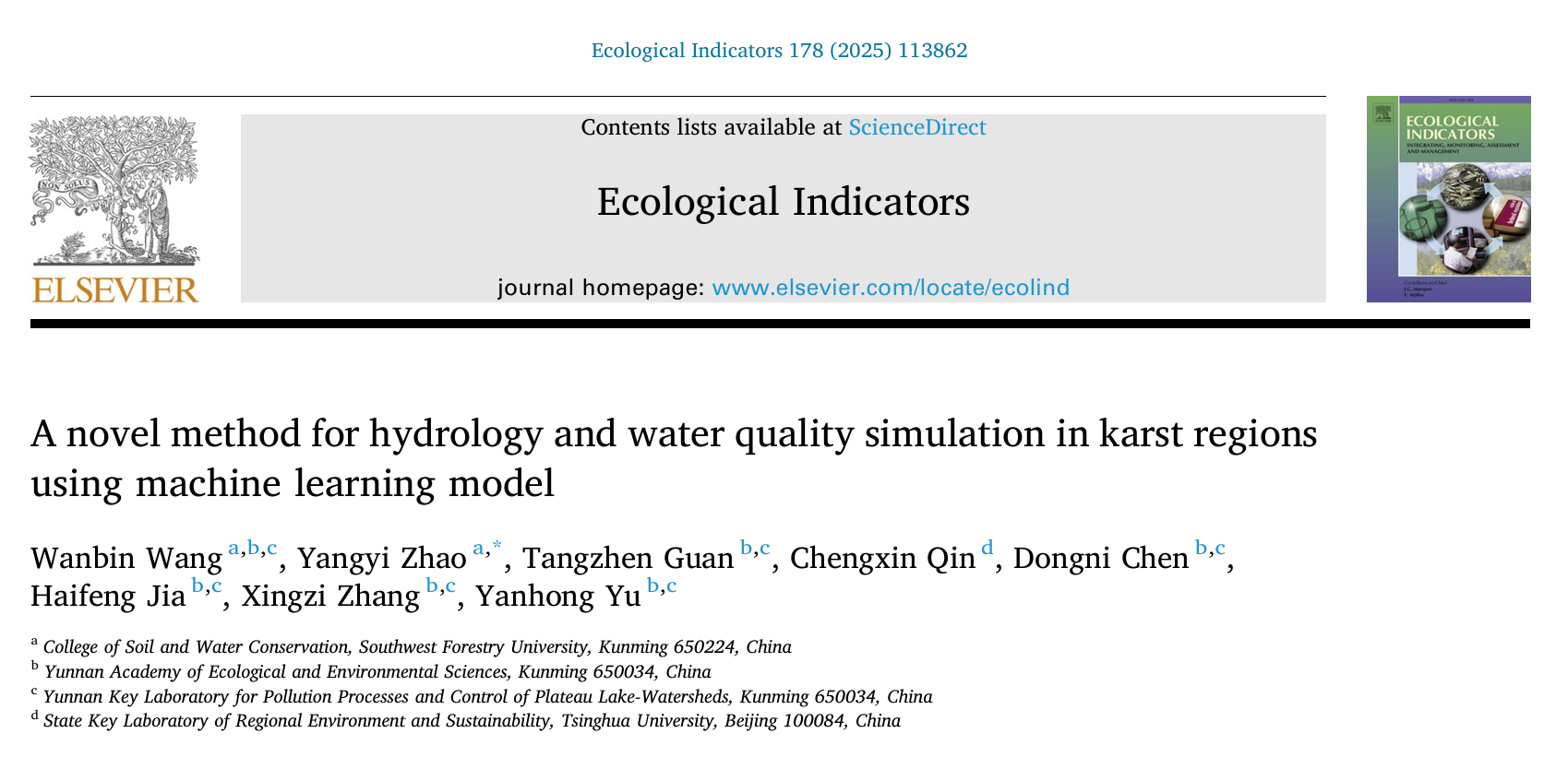 近期,我校赵洋毅研究团队在国际知名期刊Ecological Indicators(中国科学院一区TOP期刊,IF=7.4)上发表了题为 " A novel method for hydrology and water quality simulation in karst regions using machine learning model" 的研究论文。