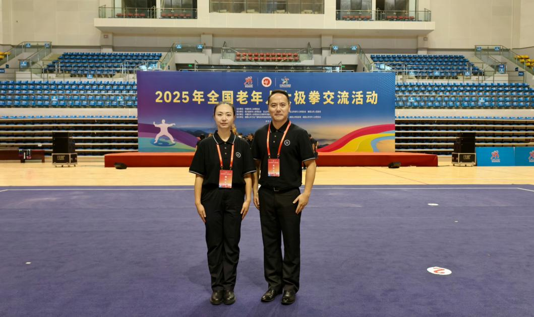 近日,我校体育学院教师关鹏、郑洁莹受邀担任2025年全国老年人太极拳交流活动裁判员。