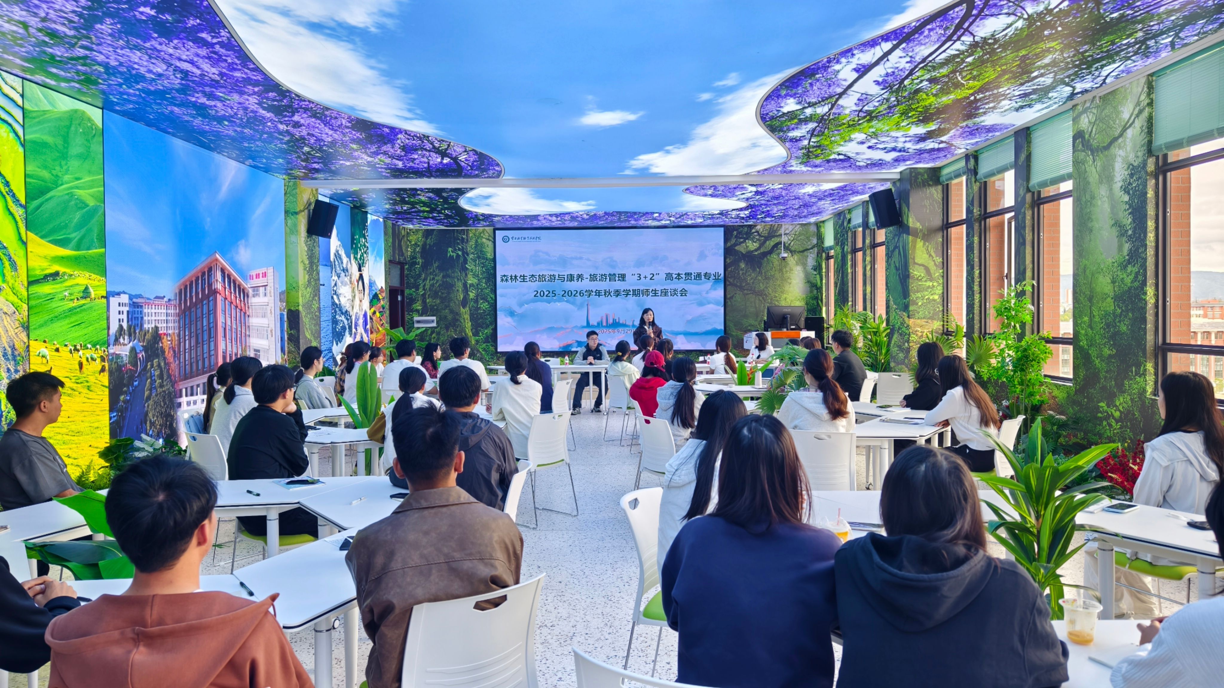 本次调研期间,双方同步召开2025级47名新生交流座谈会。会上,不仅详细解读了“3+2”高本贯通培养模式的分段衔接机制、核心优势及未来就业发展前景,更结合云南省 “十四五”文旅康养产业发展规划与区域产业需求,勉励新生立足专业特色树立学习自信,提前规划学业路径。