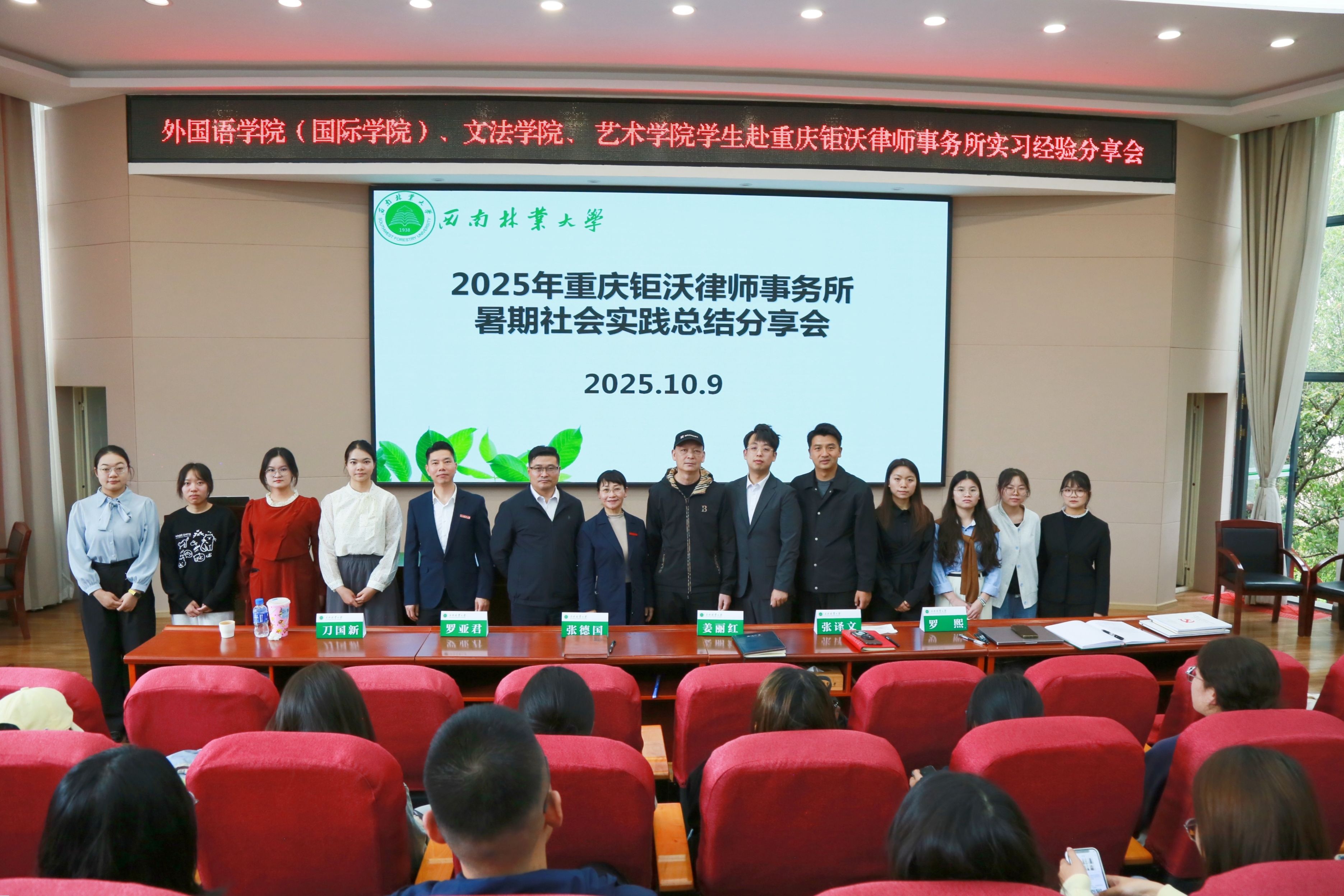 10月9日,外国语学院(国际学院)、文法学院、艺术与设计学院联合重庆钜沃律师事务所举办暑期实习实践总结分享会。外国语学院党委书记姜丽红、重庆钜沃律师事务所合伙人罗亚君律师、罗熙律师以及150名学生参加了分享会,活动由外国语学院党委副书记刀国新主持。
