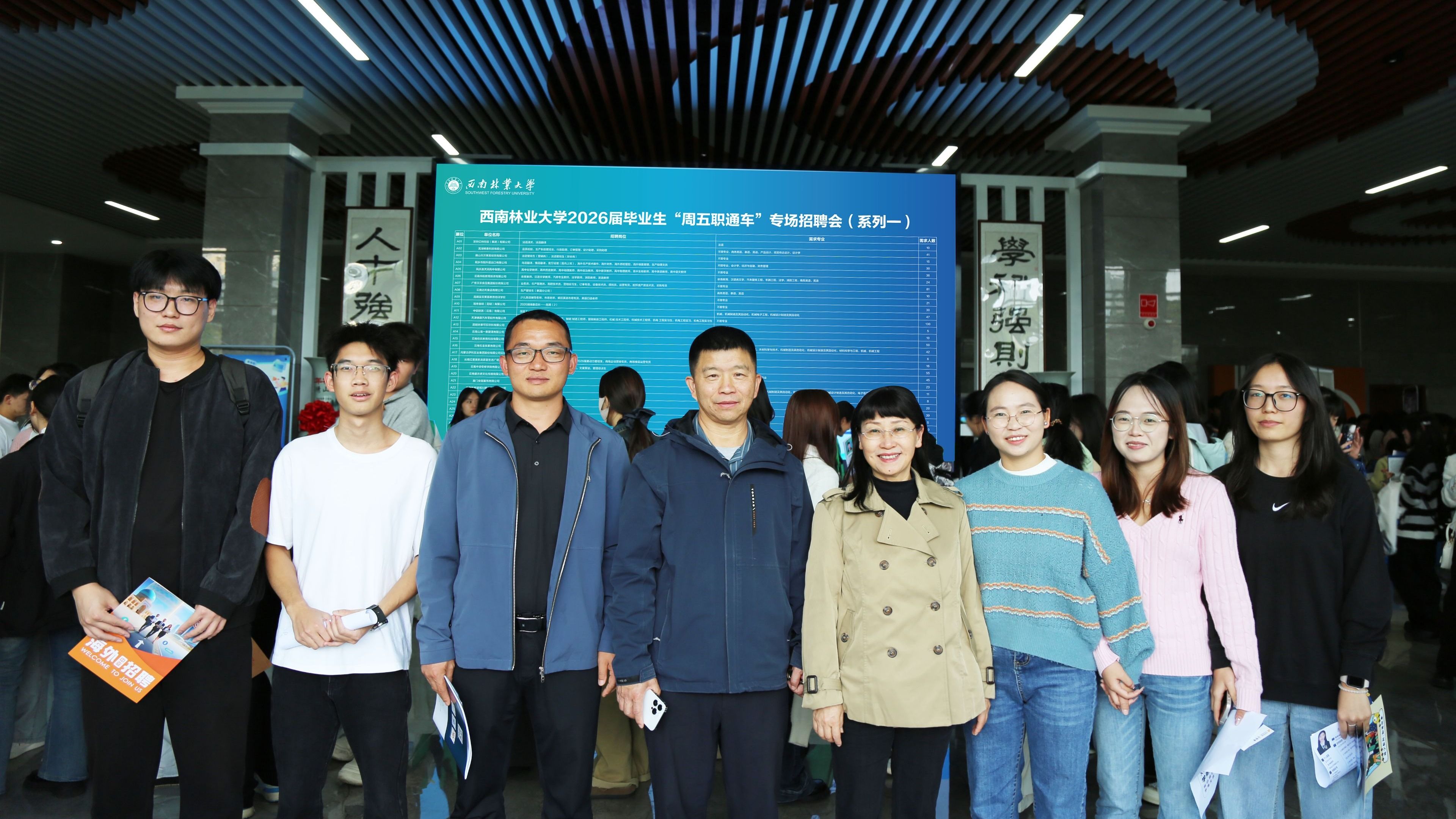 10月24日,由外国语学院(国际学院)承办的我校2026届毕业生“周五职通车”专场招聘会(系列一)在经管楼一楼大厅举办。学院党委书记姜丽红、院长何新元、党委副书记刀国新,以及各学院就业工作负责人到场指导工作。