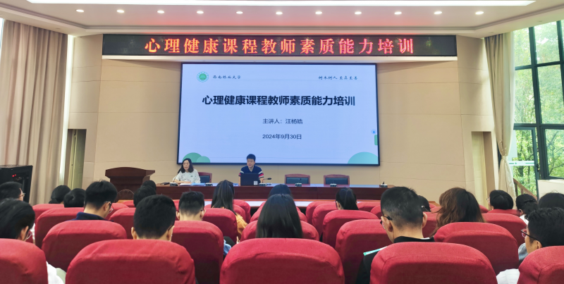 为推动新时代大学生心理健康服务工作,进一步提升我校学生心理育人质量和心理健康素质,9月30日,学生处组织开展心理健康课程教师素质能力培训。各学院二级心理辅导站站长、负责心理工作的辅导员老师、2024级大学生心理健康课程任课老师及对大学生心理健康课程教师素质能力提升感兴趣的师生参加培训。