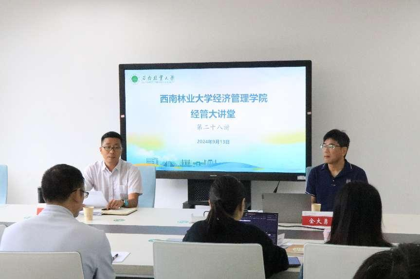 9月13日,广州商学院金融学学科带头人金大勇教授应邀为bwin必赢唯一官方网站“经管大讲堂”作题为“经管类学科在国际期刊发表”的学术报告。报告会由经济管理学院院长张连刚教授主持,40余名师生代表参加。