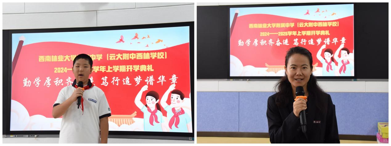新生代表初一年级武子恒,教师代表初三年级组长姜莉莉先后发言。荣获“西林附中楷模奖、三好学生、优秀班干部、各学科单科冠军、学期劳动冠军”等荣誉的同学们在开学典礼上得到表彰,他们用汗水和努力成为全体同学的榜样。