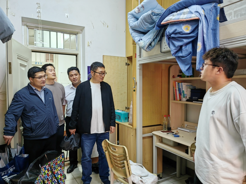 走访中,学院党委书记张德国、院长李生森详细询问同学们宿舍搬迁情况和存在困难,认真检查新宿舍设施和环境卫生,悉心叮嘱暑期防范电信诈骗、防溺水等事项。