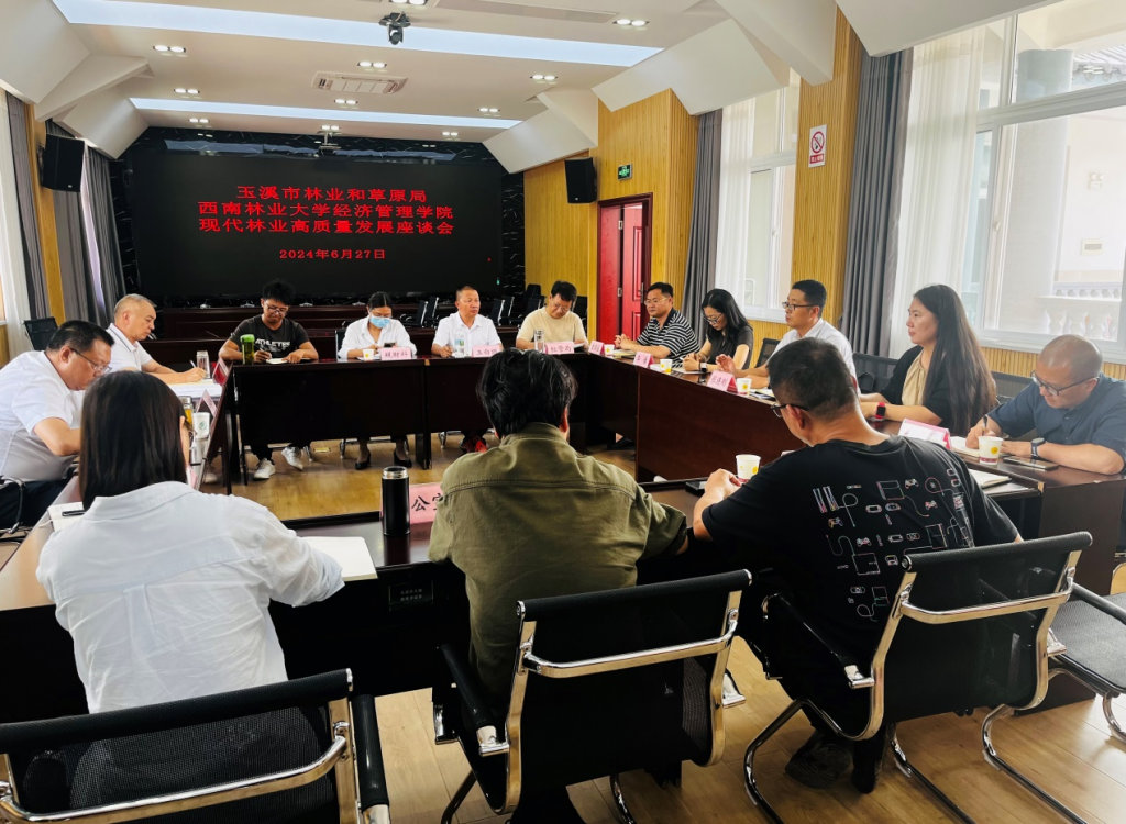 6月27日,经济管理学院院长张连刚一行5人赴玉溪市林业和草原局参加现代林业高质量发展座谈会,旨在共商局校合作交流机制,共谋林业产业、林业教育高质量发展。玉溪市林业和草原局局长马春明、副局长刘绍宏,林科院院长杜剑波、副院长王俊超及相关科室人员参加座谈。