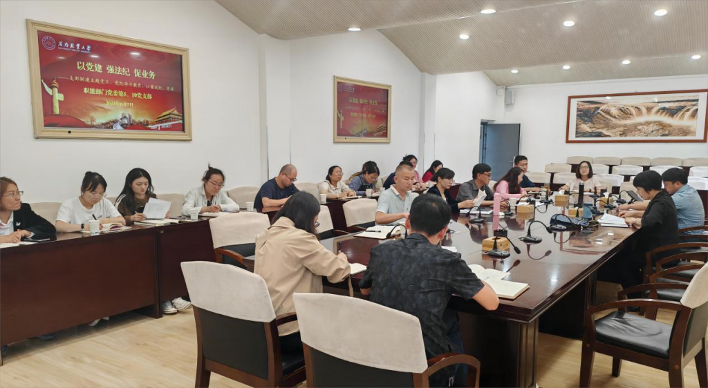 6月7日下午,职能部门党委第5支部和第10支部组织开展“以党建 强法纪 促业务”联建主题党日活动。两个支部全体党员和非党员处级领导干部参加会议,校纪委书记武红星、副校长狄光智以普通党员身份参加活动。活动由第5党支部书记龙素英主持。