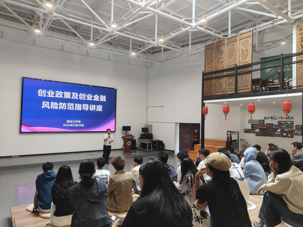 盘龙区农村信用合作联社白龙信用社副主任谢伟讲解创业政策及创业金融风险防范等问题,帮助同学们了解电信诈骗、个人征信保护等信息,提醒创业同学时刻树立风险防范意识。
