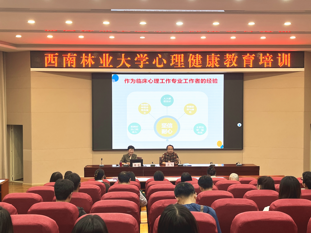 为提高辅导员及班主任心理健康教育工作技能,5月21日,学校学生心理健康教育与咨询中心在双创园报告厅开展心理健康教育培训。本次培训采用线上和线下相结合的方式,特邀请南方医科大学陈洁副教授担任主讲。