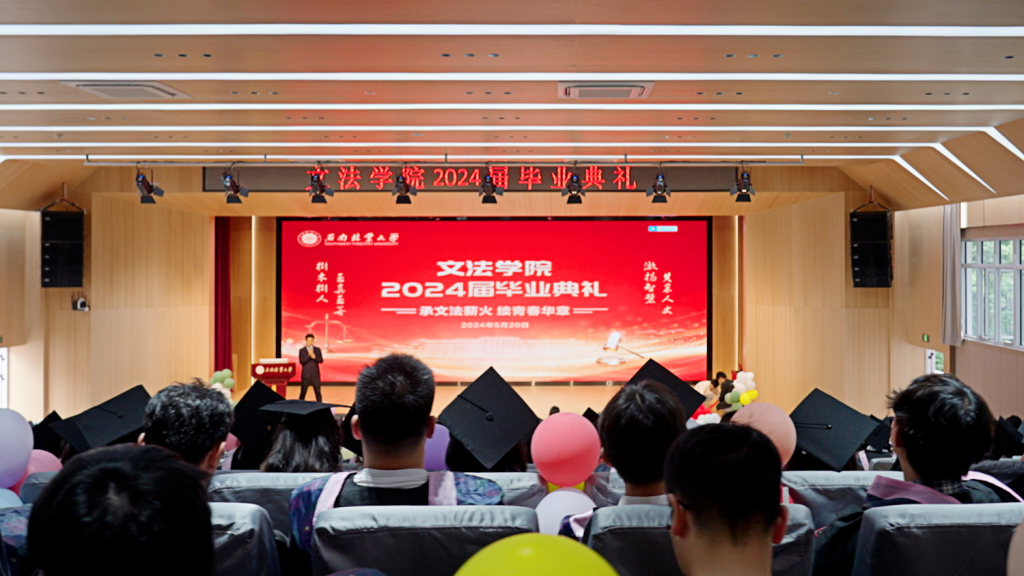 典礼在歌曲节目中结束,文法学子将秉承“树木树人 至真至善”的校训、“激扬智慧 共襄人文”的院训,牢记习近平总书记对青年学子的殷切嘱托,在各自的岗位上熠熠生辉,书写西林人新的人生篇章。祝愿文法学子在新的人生路上扬帆起航,一路顺风。(来源:文法学院/文/图:茶云龙/审核:杨欣/初审:史桓恺/复审:矣学忠/终审:柏顺文/责任编辑:矣学忠)