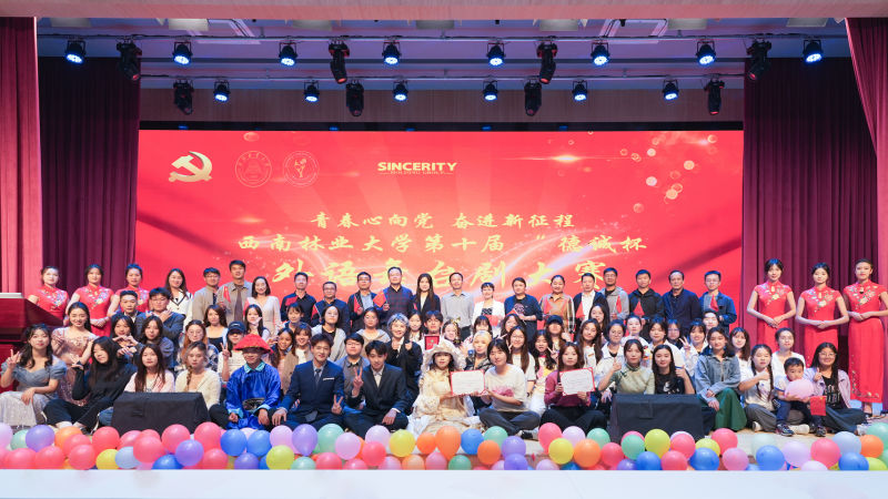 外国语学院院长何新元为颁奖典礼致辞,广州德珹控股有限公司人事部主管李思敏女士代表公司发言。此次大赛共有来自全校各学院的20个剧目参赛,包含英语、法语、泰语等语种,经过激烈角逐,外国语学院法语系《双厨狂喜》荣获一等奖和最佳人气奖,园林园艺学院、文法学院、生态与环境学院(湿地学院)以及外国语学院的《穿越时空的对话》《纽扣的希望》《诀别》等9个剧目获奖。