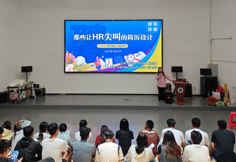 为切实提高我校学生简历设计制作能力,4月26日下午,图书馆(档案馆、校史馆)邀请中新金桥信息技术(北京)有限公司培训讲师罗琰,在创想园举办大学生简历设计制作讲座。