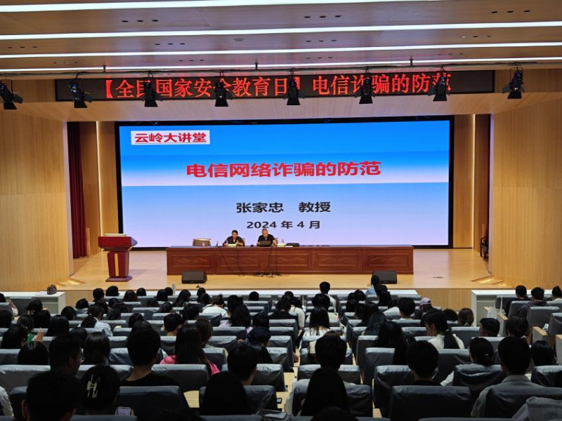 为认真学习贯彻总体国家安全观,增强大学生国家安全意识和法治意识,4月17日,生态与环境学院(湿地学院)与保卫处联合举办防诈骗知识专题讲座。讲座系“云岭大讲堂·人文西林讲坛”系列活动之一,特别邀请云南警官学院云岭大讲堂专家张家忠教授作报告。学校保卫处、生态与环境学院(湿地学院)主要负责人,学院400余名师生参加本次讲座。讲座由生态与环境学院(湿地学院)党委副书记赵芬主持。