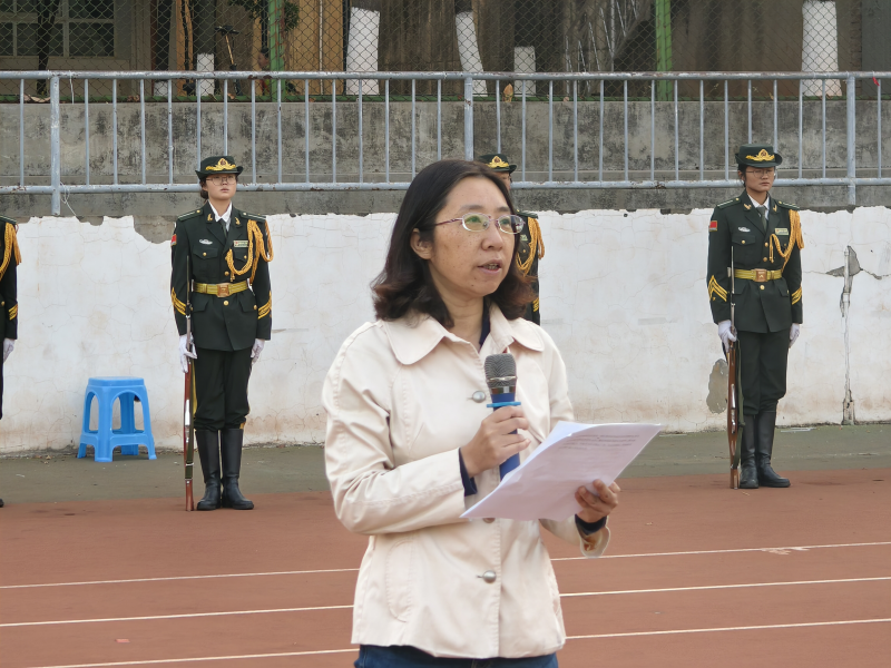 仪式上,英姿飒爽的国旗护卫队迈着整齐划一的步伐,护送着鲜艳的五星红旗缓缓走向旗台,全场师生高唱国歌,伴随着雄壮的《义勇军进行曲》,五星红旗冉冉升起,点燃了在场师生满腔炽热的爱国之情。