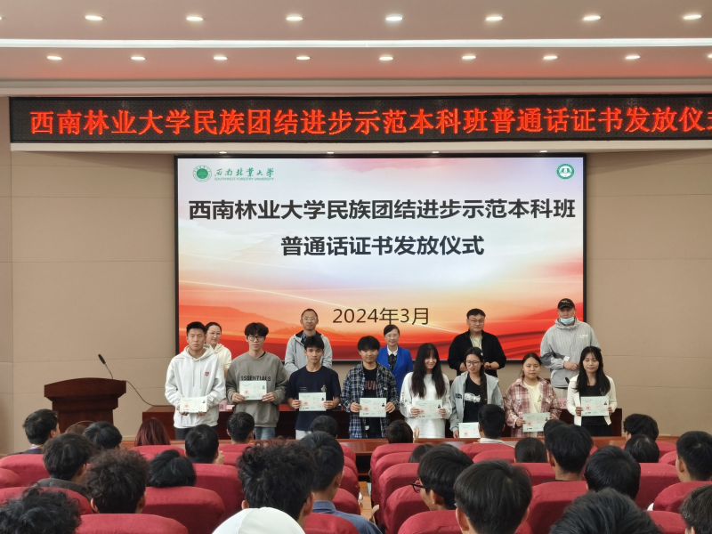 3月29日,我校2023级民族团结进步示范本科班普通话证书发放仪式在双创园报告厅举行。仪式由示范班班主任吐努克老师主持。